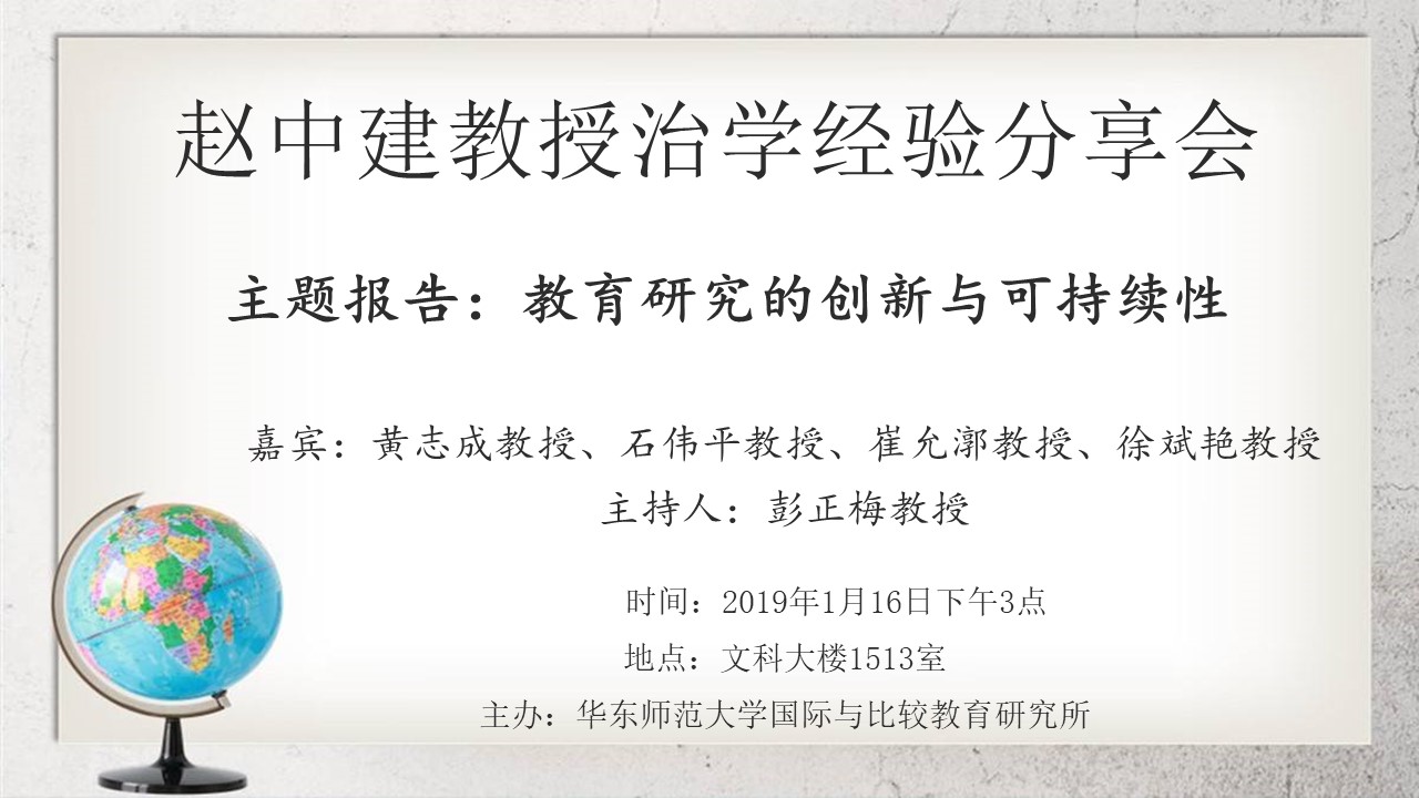 赵中建教授治学经验分享会:教育研究的创新与可持续性