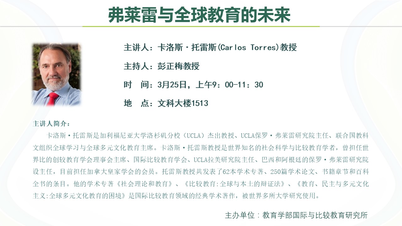 卡洛斯·托雷斯(Carlos Torres)教授:弗莱雷与全球教育的未来