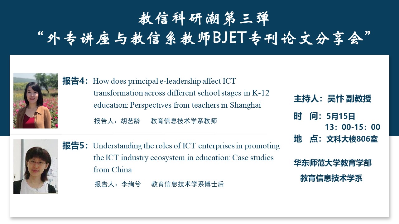 教信科研潮第三弹 “外专讲座与教信系教师BJET专刊论文分享会”