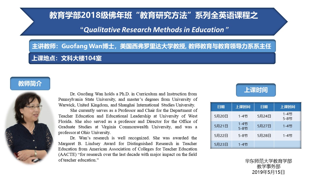 Guofang Wan博士:“Qualitative Research Methods in Education”