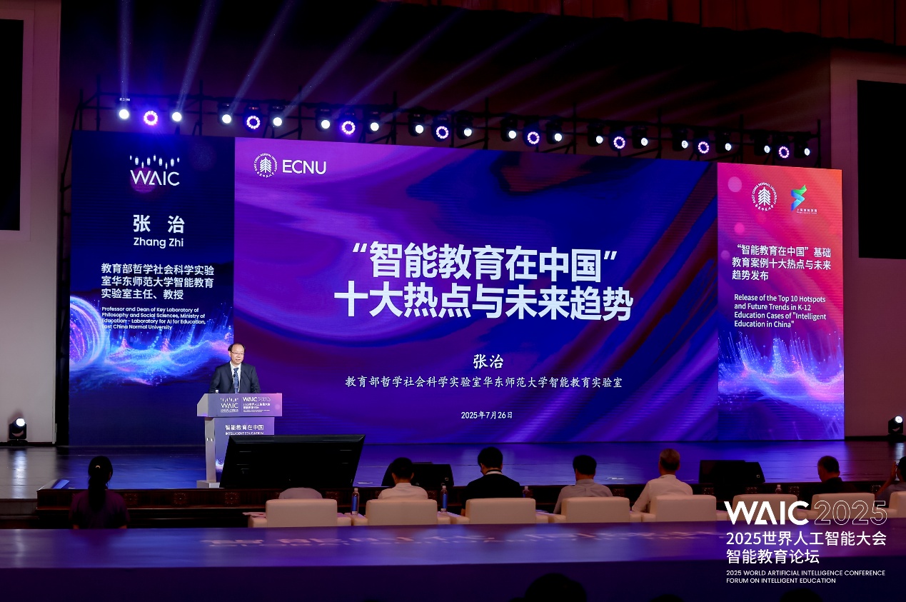 7月26日下午,由华东师范大学与上海创智学院联合主办的2025世界人工智能大会智能教育论坛在上海世博中心·红厅隆重召开。论坛以“智能教育在中国:大模型、好案例、新产品”为主题,汇聚全球顶尖学者、教育实践者及产业代表近2000人参会,共同探讨人工智能驱动教育变革的中国路径。