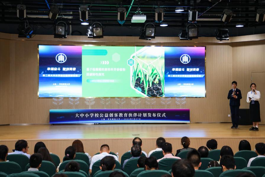 当蝉鸣遇见代码,当暑期碰撞创新,一场属于全国青少年的科创盛宴在丽娃河畔绽放华彩。7月27日,“幸福奋斗·智创青春”第二届大中小学生公益创客论坛颁奖典礼暨“大中小学校公益创客教育伙伴计划”发布仪式在华东师范大学成功举行。来自新疆、四川、贵州、江苏、上海等5省份21所学校的300余名大中小学生,齐聚申城,共同展示人工智能时代他们对知识学习与转化运用、科学技术与现实生活、民生关切与幸福创造的感知理解和行动方案,年龄跨度从小学一年级到硕士研究生。