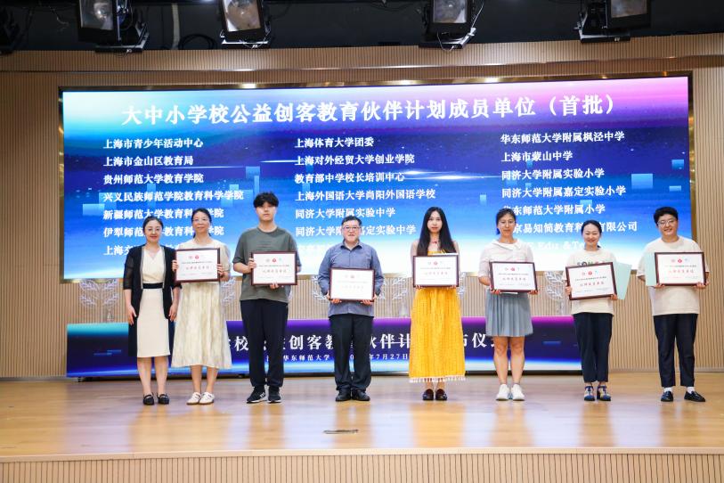 论坛高潮是“大中小学校公益创客教育伙伴计划”的发布。华东师范大学教育学部党委书记闫露现场发出倡议,并为全国首批加入计划的20家单位授牌。该计划由华东师范大学教育学部联合上海市青少年活动中心、联合国教科文组织联系学校网络国际中心、地方教育部门及多所大中小学校共同发起,是论坛从“活动”迈向“长效生态”的关键一步,旨在系统性应对当前拔尖创新人才培养过程中,资源分布不均、学段衔接不畅、实践平台匮乏、应用转化不力等现状和挑战。