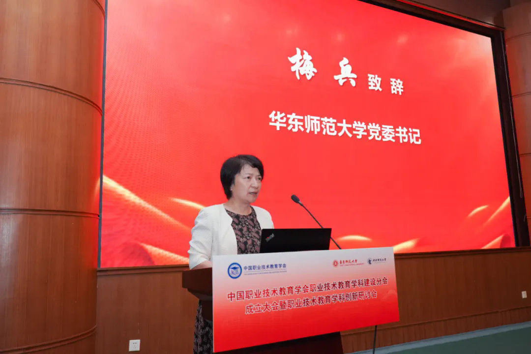 梅兵在致辞中表示,作为全国最早设置职业技术教育学硕士点和博士点的高校,华东师范大学在职业技术教育学科建设、服务职业教育决策和指导推动实践方面有着良好的传统和基础。作为职业技术教育学科建设分会的牵头单位,学校将与各界同仁一道,共同为一直致力于和未来有志于投身职业教育事业的力量搭建起一个开放、协作、融通的平台,积极推动中国职业教育自主知识体系建设,为加快推进现代职业教育体系建设改革、助力教育强国建设作出积极贡献。