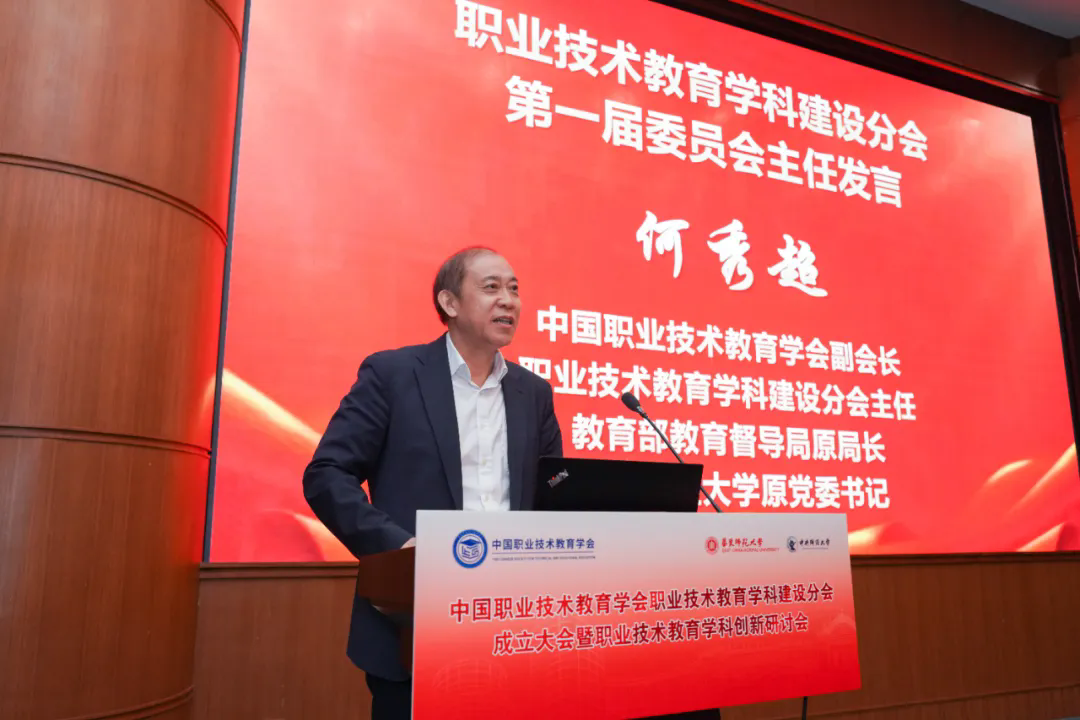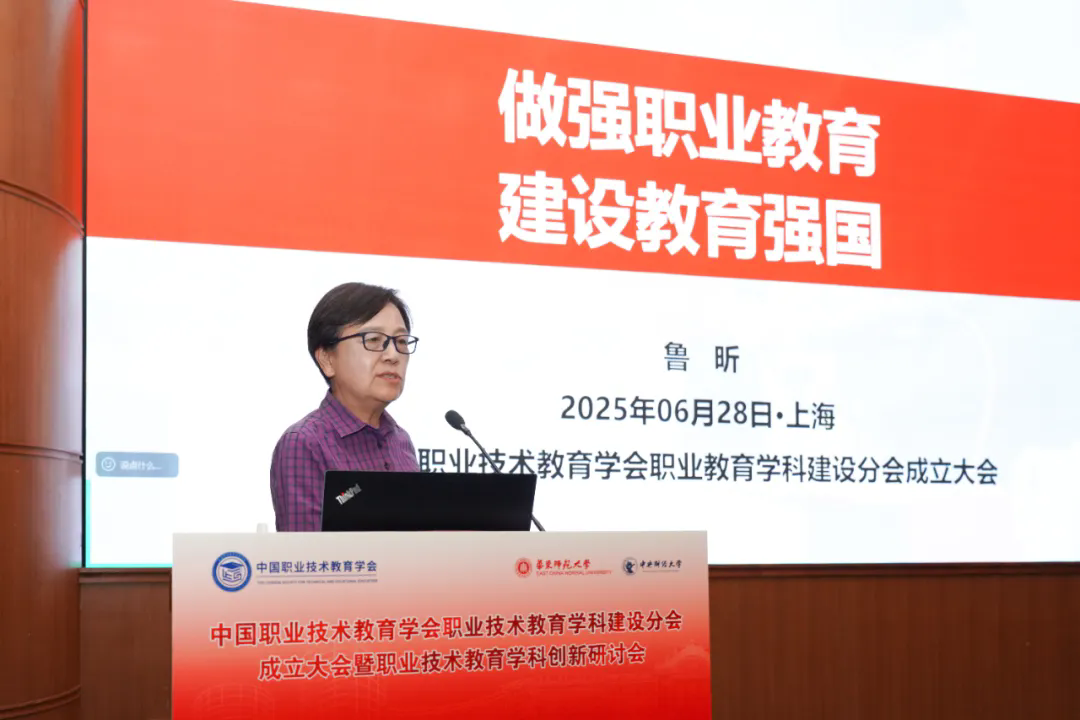 6月28日,中国职业技术教育学会职业技术教育学科建设分会成立大会在华东师范大学召开。中国职业技术教育学会会长、教育部原副部长鲁昕,中国学位与研究生教育学会副会长、教育部学位管理与研究生教育司原司长、山东大学原党委书记郭新立,中国高等教育学会副会长、教育部职业教育与成人教育司原司长、江苏省教育厅原厅长、江苏省政协教卫体委员会主任葛道凯,职教学会副会长、教育部教育督导局原局长、中央财经大学原党委书记何秀超,职教学会副会长、教育部职业教育发展中心主任林宇,上海市教育委员会副主任赵震,华东师范大学党委书记梅兵,职教学会副会长花景新,华东师范大学职业教育与成人教育研究所原所长钱景舫、石伟平,华东师范大学特聘教授、职业教育与成人教育研究所所长、国家职业教育教材建设重点研究基地主任徐国庆,中央财经大学政府管理学院院长姜玲、《中国教育报》职教周刊主编翟帆等领导嘉宾出席会议。来自全国职业院校、高水平大学、科研机构、头部企业等的150多名专家学者齐聚一堂,共同参与和见证中国职业技术教育学科建设的重要里程碑。