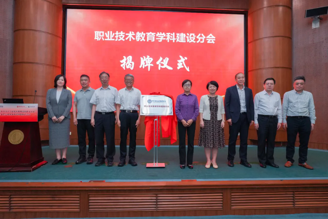 成立大会上,与会领导和嘉宾共同为职教学科分会揭牌。