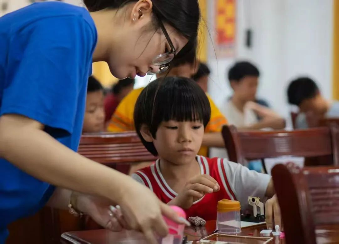 社会发展学院“心耕云甸·绘梦再启”团队从“新内生发展”视角探索乡村振兴。30余名师生在泽铁村、麦冲村开展苗族文化设计工坊、游戏工作坊等活动。“衍纸工坊里,孩子们的巧思让我震撼——教育并非单方面给予,而是俯身并肩时,发现每颗心都是待启的宇宙。”2023级生物科学专业的袁文静感慨道。