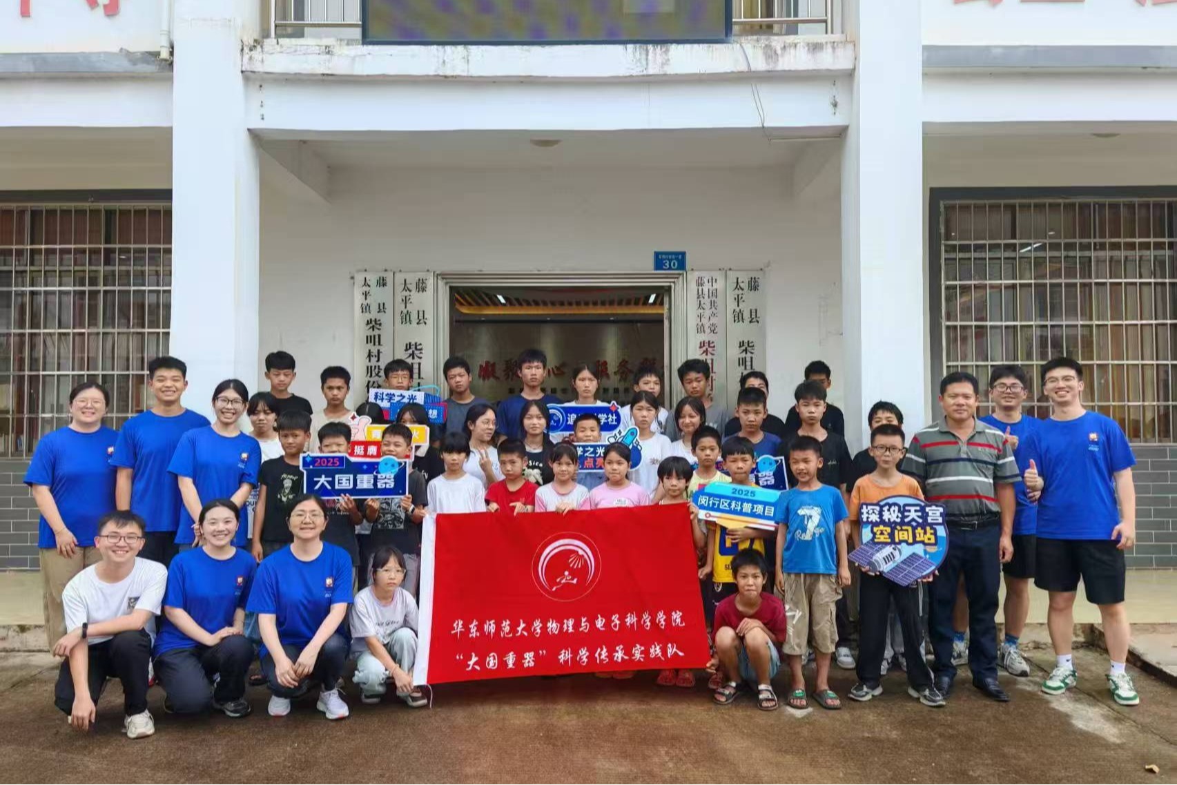 物理与电子科学学院 “探访‘大国重器’,带科学回家” 团队更跨越山海:13名师生深入贵州 “中国天眼” 调研,再赴广西藤县、云南寻甸开展科普,将大国重器的科学原理转化为生动课堂。“柴咀村与寻甸回族彝族自治县的孩子们眼中的渴望,是我们前行源源不断的动力。”2023级本科生李诗琦说,这是科技自信与科学种子的共同生长。
