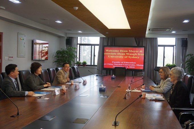 On November 14th, 2016, Prof. Diane Mayer (Dean) and Prof. Fran Waugh (Vice Dean) from The Education and Social Work Institute, University of Sydney, visited the Faculty of Education, ECNU. Huang Jin (Deputy Dean), Zhou Bin (Dean of College of Teacher Education) and Yang Fuyi (Director of International Affairs Division) attended the conference.