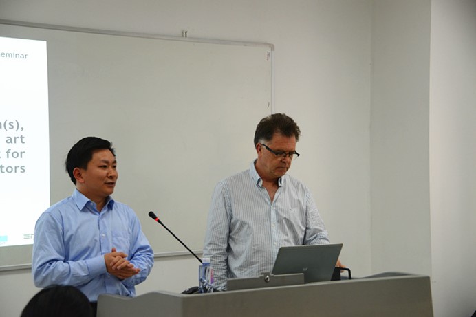 After the lecture, the Faculty of Education held a seminar on the promotion of Sino-French JoRISS Project in Room 401 in the Arts Building. Professor Chabanne of ENS Lyon, Bai Yun, the director of the Teaching Affairs Division of the Faculty of Education, Yang Fuyi and some teachers from the Faculty of Education who were interested in the JoRRIS Project attended the seminar. At first, professor Chabanne introduced his research interests and research areas. Then, the teacher representatives wanting to participate in this project had an in-depth communication with Professor Chabanne. They introduced their own research direction and major and expressed the intention to have further communication and in-depth cooperation.