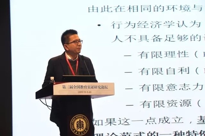 Prof. Huang Bin, Dean of the School of Public Administration, Nanjing University of Finance and Economics, gave a report titled “Experimental Economic Methods of Education and Educational Scientific Research”. He referred to “Behavioral Economics” being a cross edge discipline that applied the cognitive theory and experimental methods of psychology directly to the analysis, interpretation and prediction of individual economic behaviors. This method was applied in the field of educational economy research. He believed that the application of behavioral experimental economics could form effective educational policy interventions and promote the development of educational scientific research.