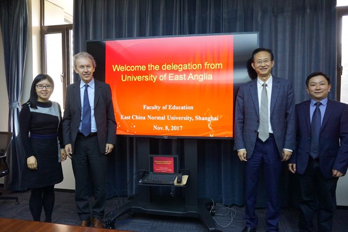 On November 8th, 2017, a delegation from University of East Anglia (UEA) visited the Faculty of Education, ECNU. Prof. Richard Andrews (Dean of the School of Education and Life-long Study, UEA) and Dr. Cheng Ming from UEA attended a meeting with the representatives from the Faculty of Education of ECNU, including Prof. Yuan Zhenguo (Dean of the Faculty of Education) and Yang Fuyi (Director of the International Affairs Division of the Faculty of Education).