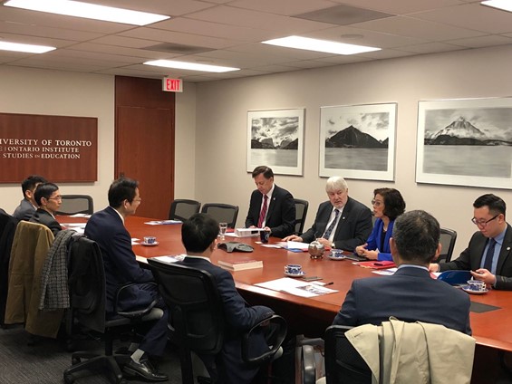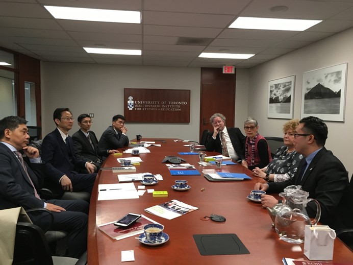 In April 2018, a delegation from the Faculty of Education, ECNU, led by Professor Yuan Zhenguo, visited the Ontario Institute for Studies in Education, University of Toronto (U of T) and signed a memorandum of understanding (MOU), for the purpose of promoting internationalization and the construction of top-class disciplines in education. The following experts were also in attendance: Deputy Director and Professor Li Zhengtao, Yang Jiuquan, editor of the East China Normal University Journal, Ke Zheng, director of Scientific Research Division, and Yang Fuyi, director of International Affairs Division.