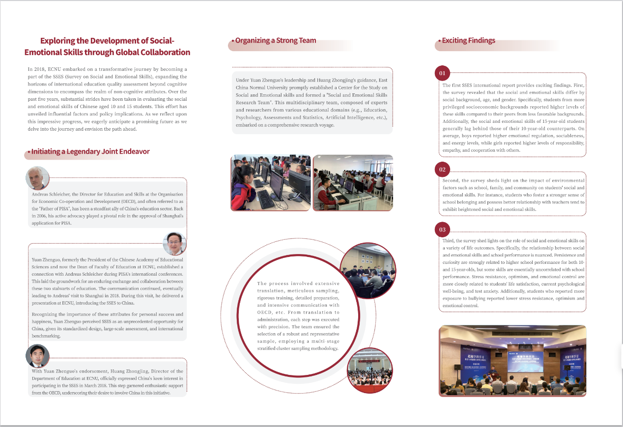To well support the SSES and research about social and emotional skills in China, ECNU established a Center for the Study on Social and Emotional skills in 2021. This center is composed of experts and researchers from various educational domains, embarked on a comprehensive research voyage.