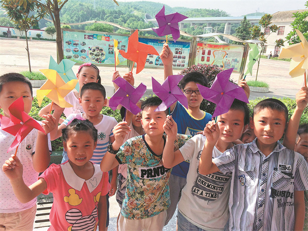 Students make paper pinwheels as part of a hands-on activity during the camp. [Photo provided to China Daily]