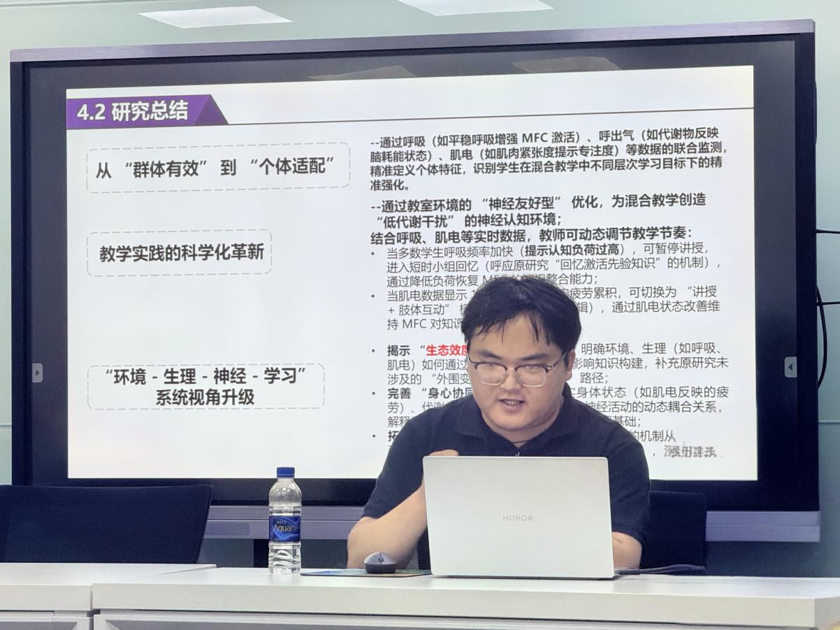 周教授的报告为后续青年学者分享奠定了坚实基础。聊城大学张如静老师展示借助近红外技术开展孤独症儿童干预的跨学科实践,生动回顾从团队协作到技术优化的全过程;华中师范大学卫梦琪博士致力于破解“知识追踪”模型的黑箱问题,创新融合脑电信号,推动个性化学习迈向“可信、可解释”新阶段;山西师范大学许施扬老师成功将以fMRI揭示的创造力神经机制转化为低成本脑机接口教学设备,实现前沿成果的普惠应用;陕西学前师范学院季皓洁老师则将脑电技术引入思政教育,借助“三因素模型”科学解析隐喻加工的认知机制,为首门“循证思政课”提供理论支撑。