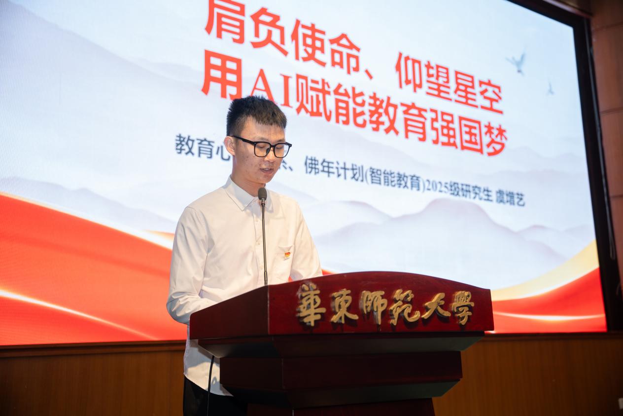 教育心理学系、佛年计划(智能教育)2025级研究生虞增艺作为新生党员代表发言