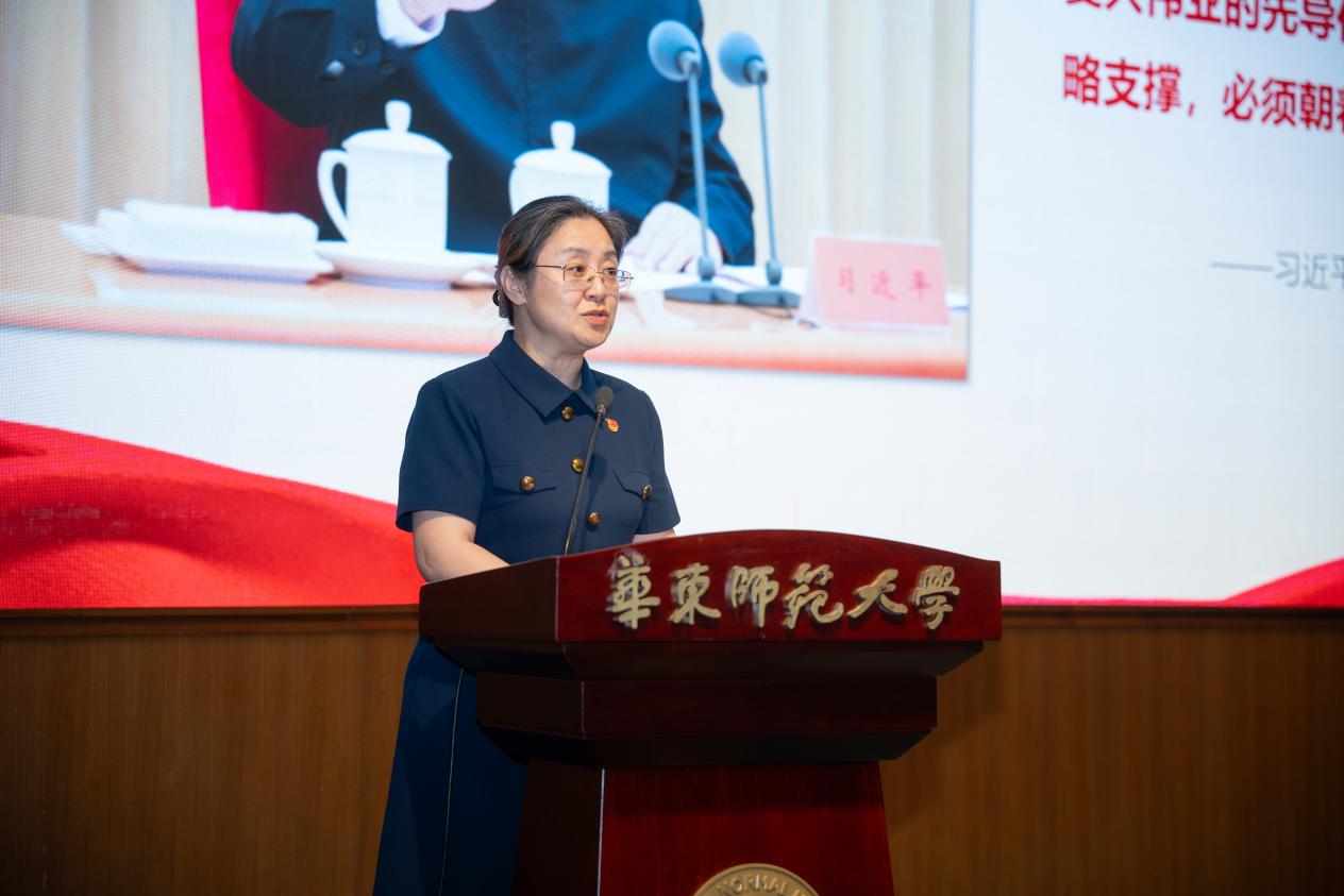 教育学部党委书记闫露以《立足时代弘扬精神,挺膺担当强国使命》为题,为全体新生党员讲授党课。