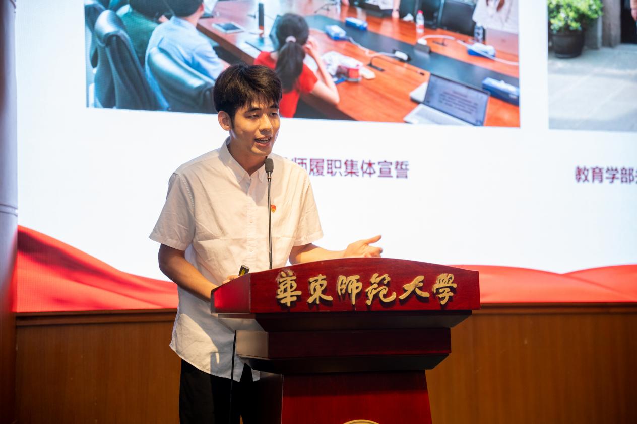 特殊教育学系2025级硕士研究生周诗琦,教育心理学系、佛年计划(智能教育)2025级研究生虞增艺作为新生党员代表,结合志愿服务与科研探索心得,分享了投身教育事业的责任与担当。