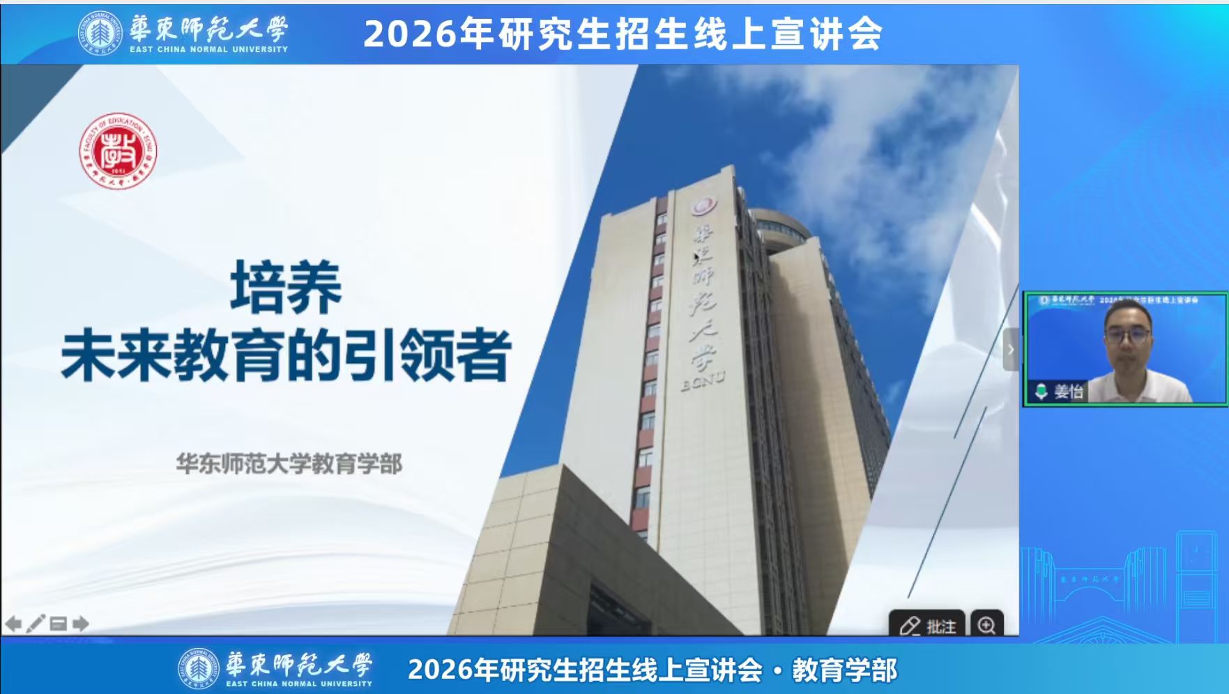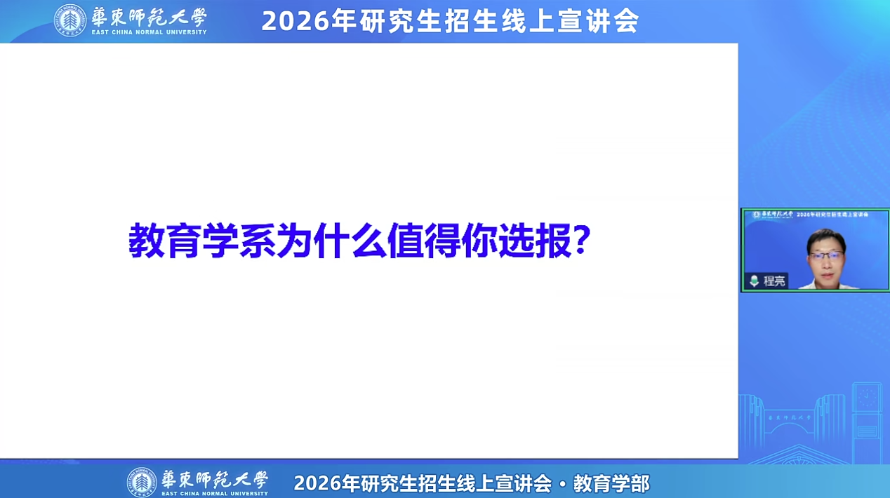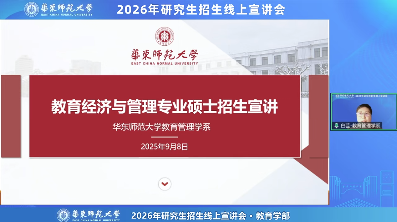 2025年9月8日18:30-21:30,在学校研究生院的大力支持下,华东师范大学教育学部2026年研究生线上招生宣讲会顺利举行。