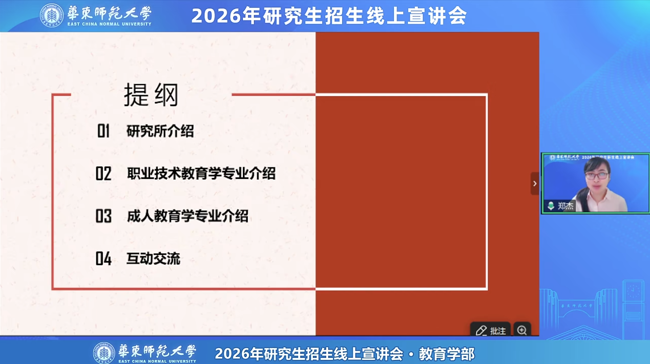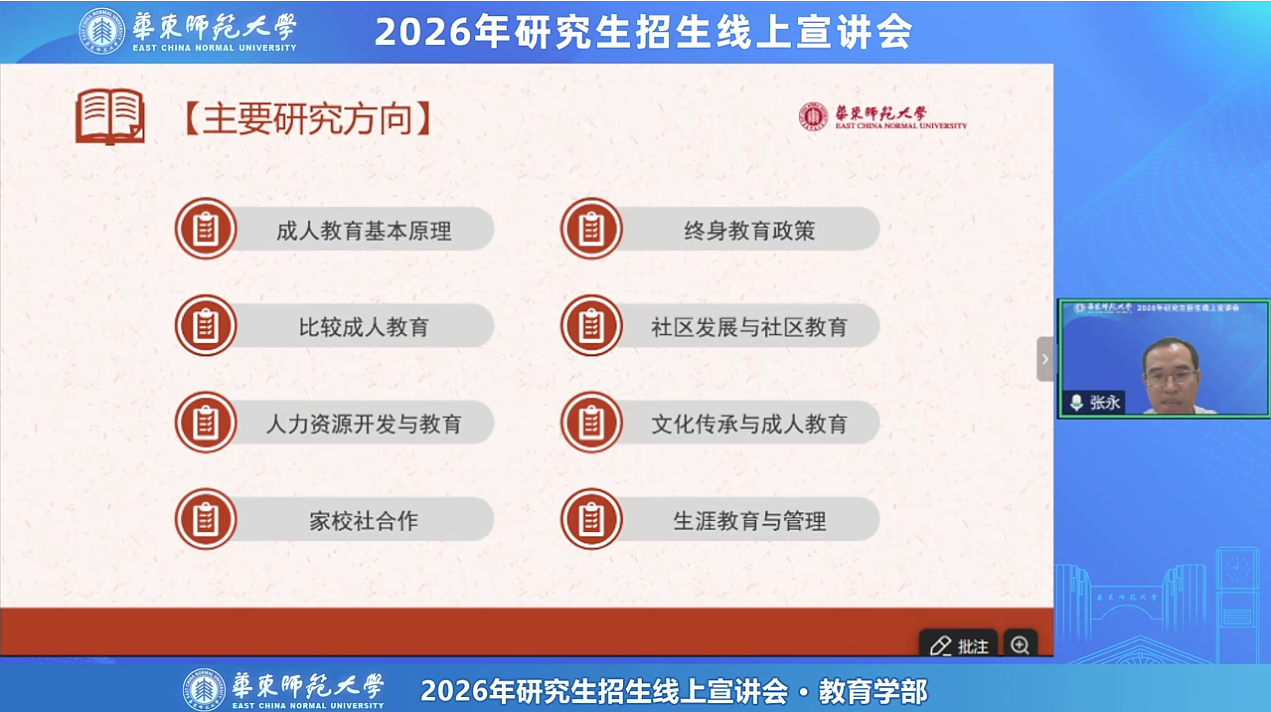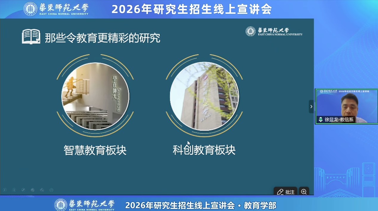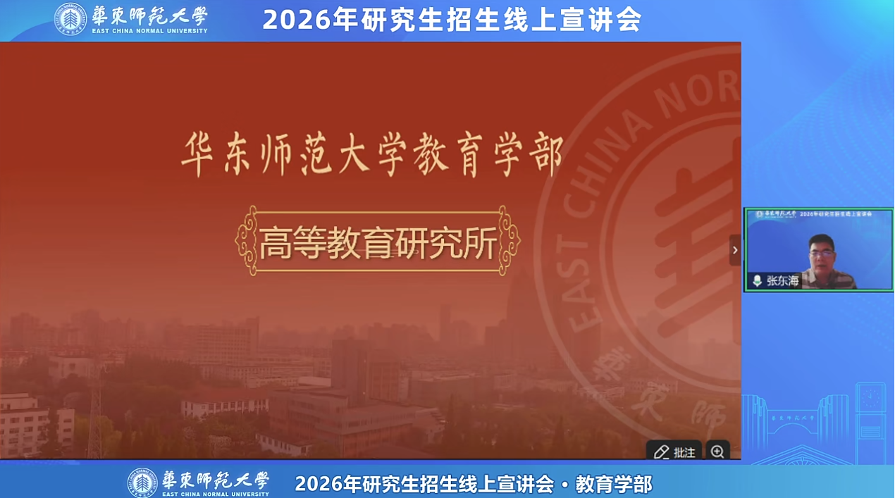 2025年9月8日18:30-21:30,在学校研究生院的大力支持下,华东师范大学教育学部2026年研究生线上招生宣讲会顺利举行。