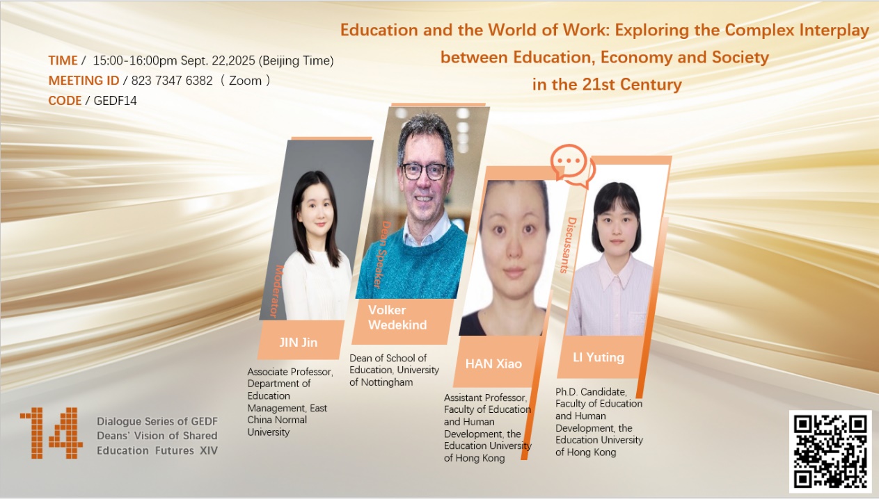 本次活动由英国诺丁汉大学教育学院院长Volker Wedekind教授担任主讲嘉宾,就“Education and the World of Work: Exploring the Complex Interplay between Education, Economy and Society in the 21st Century”这一主题进行分享。香港教育大学教育及人类发展学院助理教授韩笑,香港教育大学教育及人类发展学院博士生李宇婷受邀参与对话。我校教育学部教育管理学系副教授金津担任本次活动主持人。